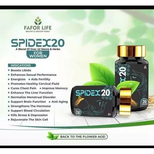 SP Spidex 20 FOR WOMEN Is a pure organic herbal blend of more than 42 stem cells, it helps rejuvenate as well as awaken sexual performance in women, revitalizes sexual vigor as well as boosts libido levels in a new dimension.